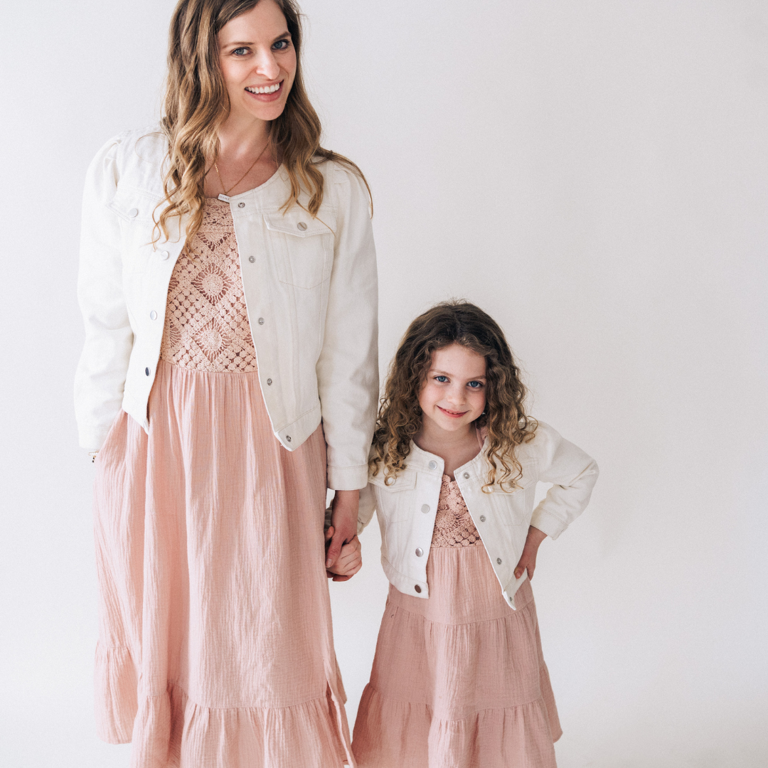 This mini cropped denim jacket is so adorable for your little one. The perfect piece to layer on top of her favorite dress or onesie. This adorable ivory denim jacket features playful pleated sleeves and sleek silver buttons. Pass down your love for fashionable layering to your little one.