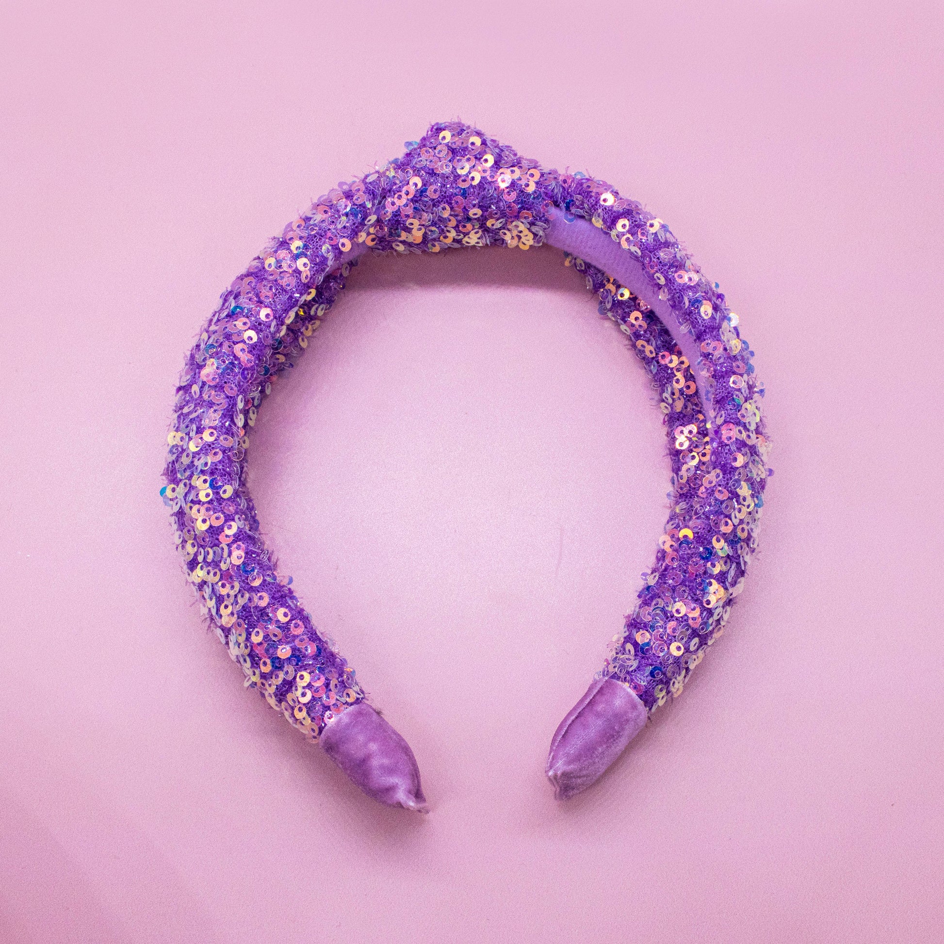 * Confetti sequin knot headband * Colors - Rainbow, White, Blue or Hot Pink * Shimmering iridescent sequins * Hard headband size 13" circumference fits best for kids to tweens * Comfortable for all-day wear
